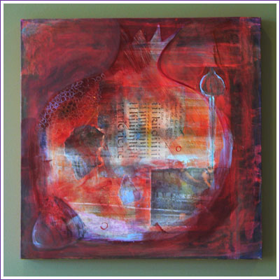 The Secret of the Pomegranate 24" x 24", mixed media on canvas