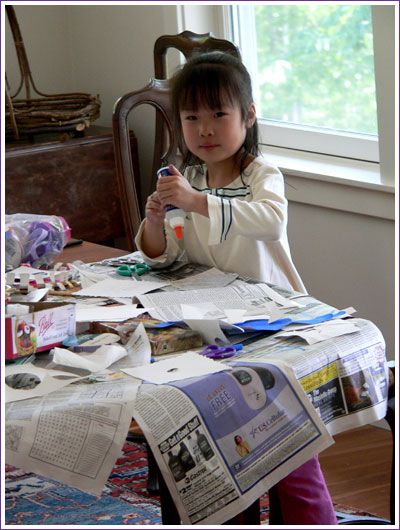 So, our cousins were up for the long weekend. I covered the dining room table with art supplies and the girls were amused for days upon days?which was good.