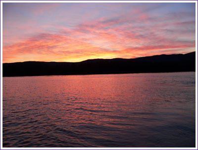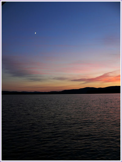 The evening was quite lovely, with other boaters joining us, chicken cooking on the grill, kids screaming and splashing, until everyone pulled away and it was just the four of us again (and Pedro the dog) and we watched the sun slip behind the mountains.