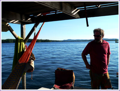 Particularly as Tom and Kitty have a most unusual watercraft nicknamed the "tom-creaky."* The boat is a floating dock with a roof deck which is, really, the only way to travel across the lake.