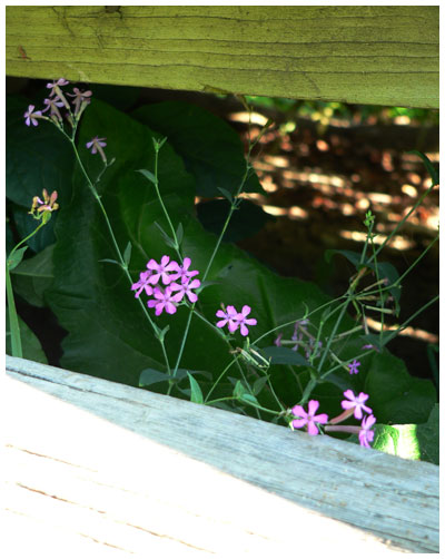 But look!-- tiny pink flowers that peek out from under my porch steps.