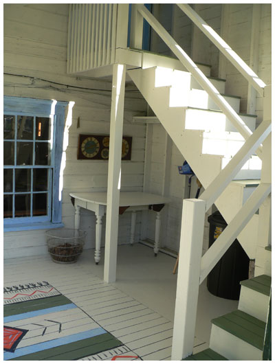 Imagine a dark, (oh so VERY dark) pine green paint and then imagine that paint on every surface, floor, stairs, bannister,